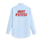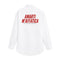 Disponibile nelle varianti bianca e celeste, entrambe con stampa posteriore che trasforma la camicia in un manifesto romantico e consapevole.