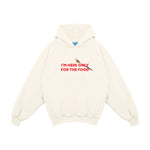 La hoodie “I’m here only for the food” è una frase ironica, diretta, perfetta per chi vive le feste con leggerezza e punta dritto alla parte migliore dei cenoni.