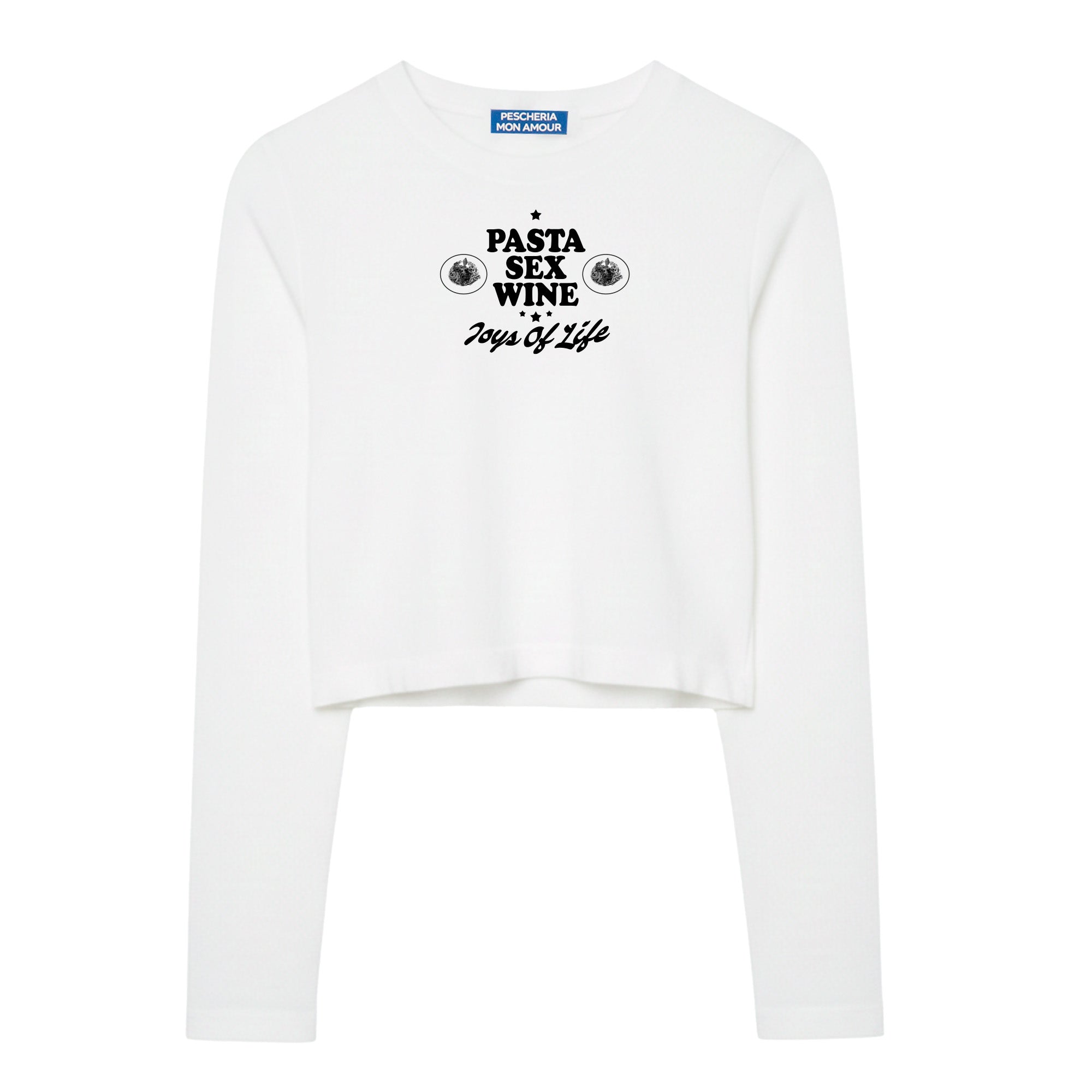 Long Sleeve Cropped Box “Pasta, sex, wine"