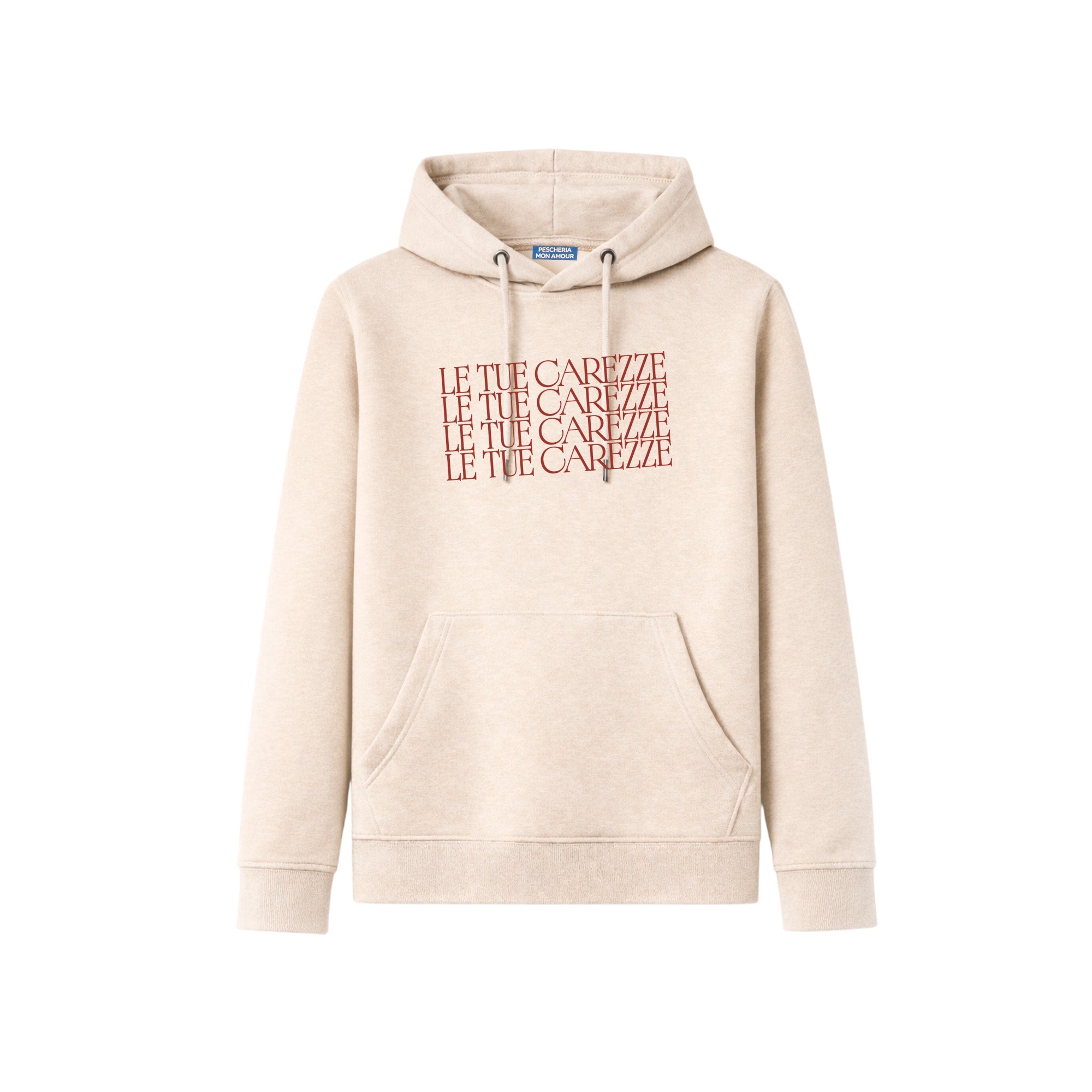 La felpa hoodie “Le tue carezze per sempre” di Pescheria Mon Amour sembra una promessa romantica… ma detta con leggerezza. È per chi ama il contatto, gli abbracci lunghi, le carezze automatiche mentre si guarda una serie. Per sempre? Vediamo. Intanto resta.