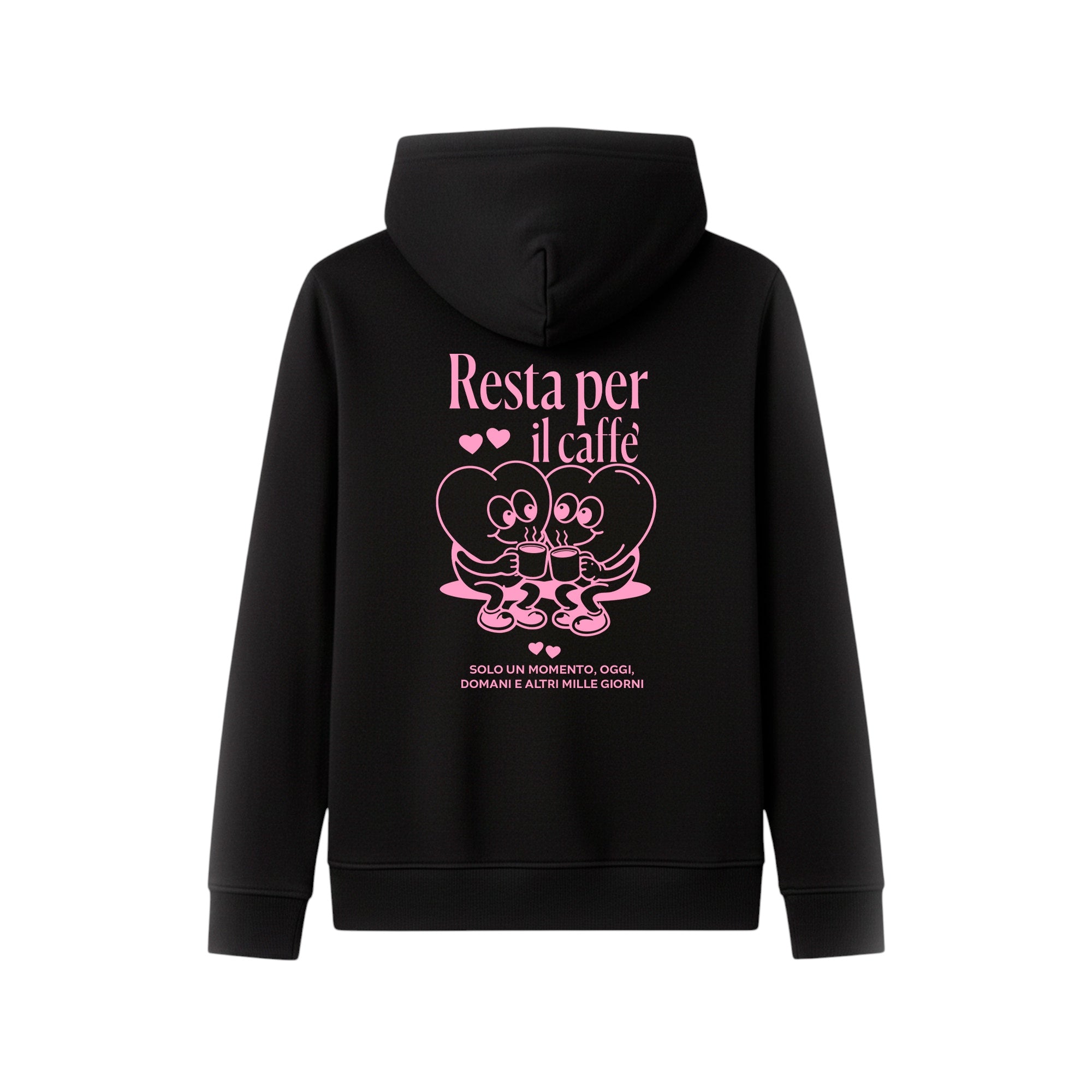 La felpa hoodie “Resta per il caffè” di Pescheria Mon Amour non è un invito innocente. È una scusa ben studiata. Per restare un po’ di più, parlare ancora cinque minuti e magari trasformare il caffè in qualcos’altro (senza dirlo).