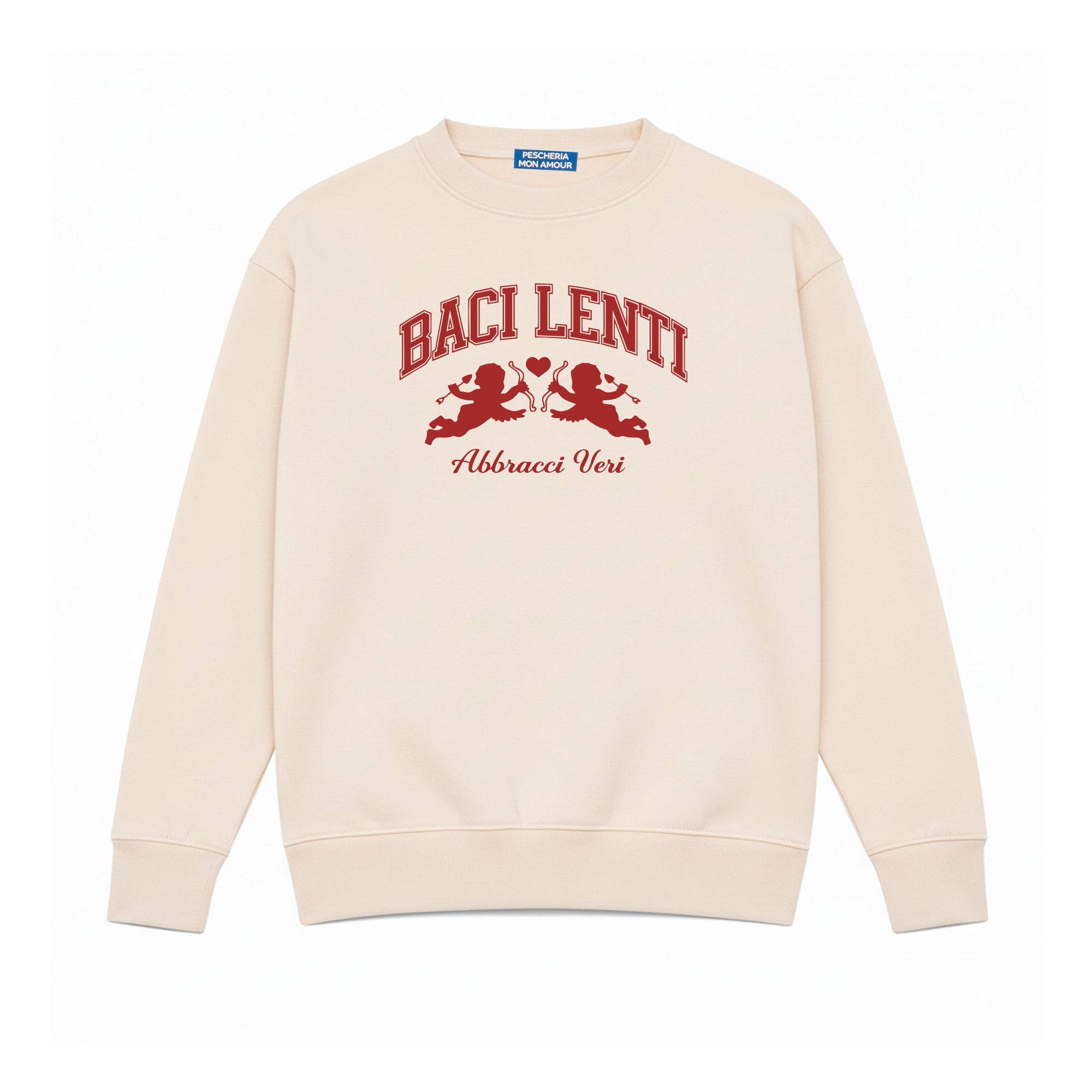 La felpa girocollo “Baci Lenti” è pensata per accompagnarti nelle giornate fredde, nei momenti lenti, nelle storie che non hanno fretta. Essenziale, morbida, confortevole: un capo da vivere, non solo da indossare.