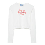 La long sleeve cropped box “Pass Me The Fucking Vino” è pura attitude. Ironica, sfacciata, perfetta per chi non chiede ma pretende. La frase è chiara, il mood anche.