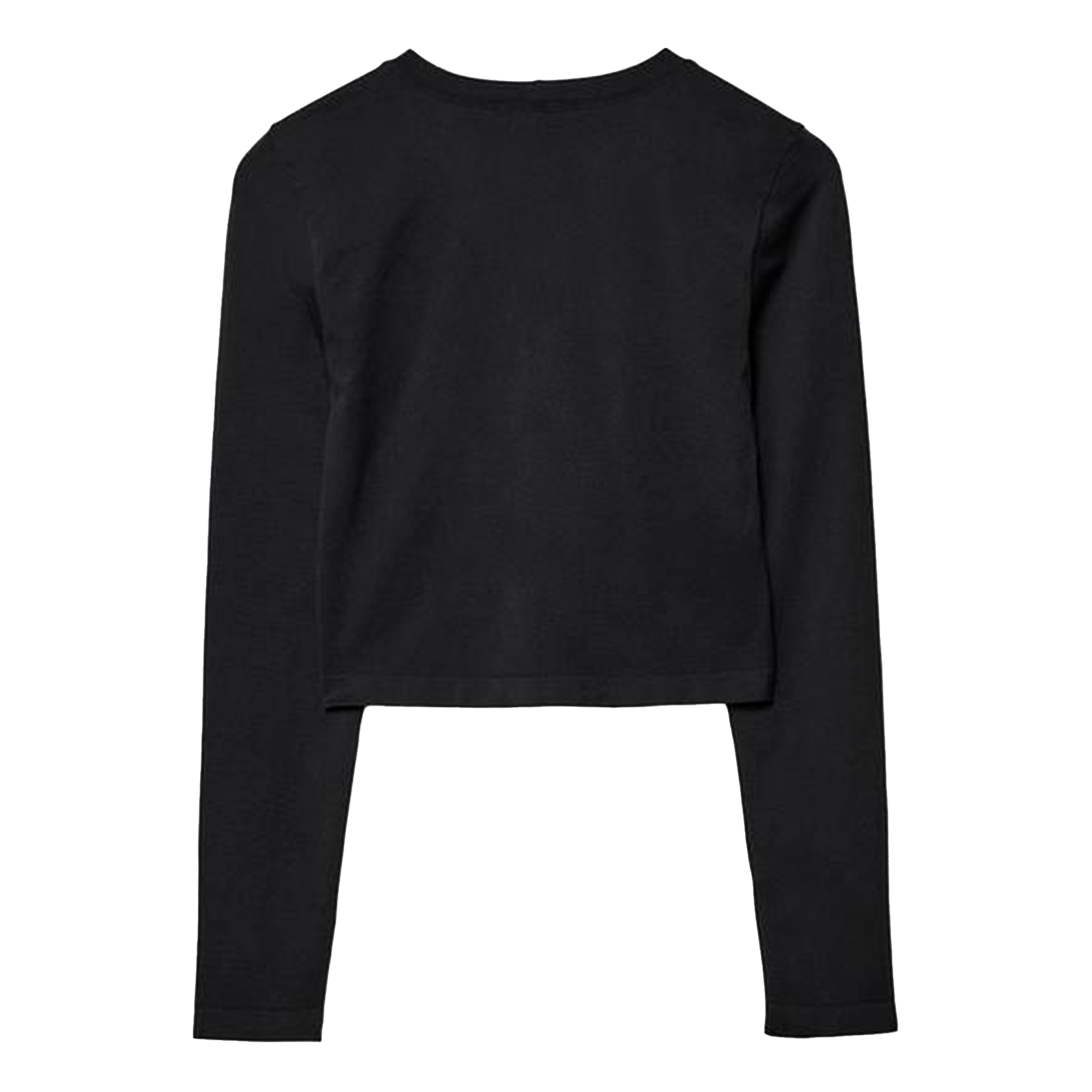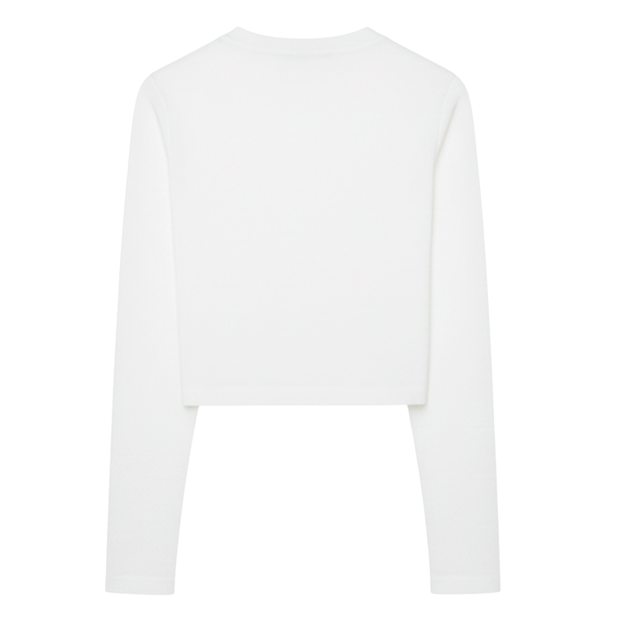 Il fit cropped box crea volumi moderni: più ampia sul busto, più corta in lunghezza. Perfetta per layering o per essere indossata come pezzo protagonista.