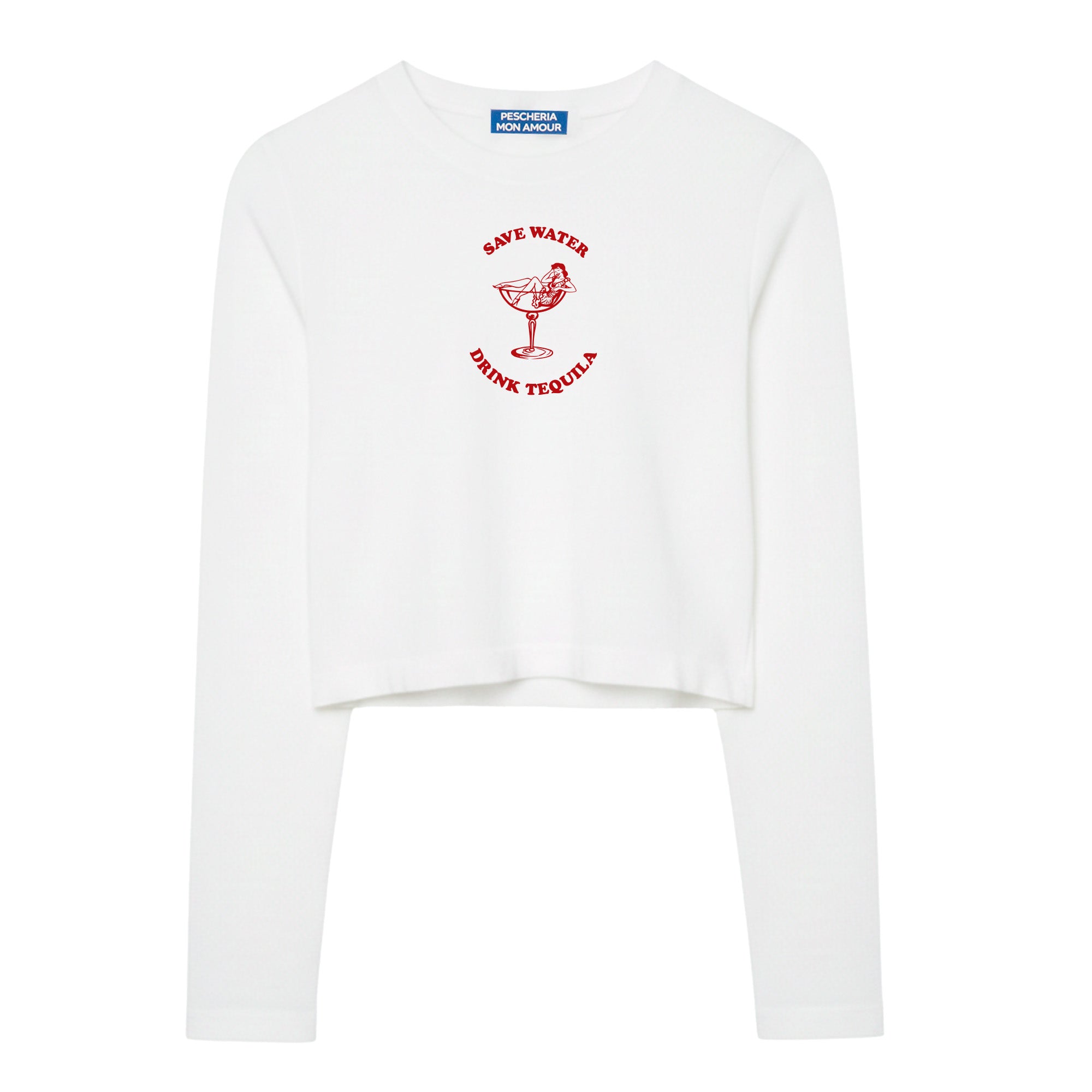 La long sleeve cropped box “Save Water Drink Tequila” è ironia pura da notte estiva. Sfacciata, divertente, zero morale. Se devi scegliere, scegli bene.
