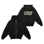 La zip frontale il cappuccio e le tasche la rendono versatile, perfetta da indossare ogni giorno, mentre la stampa è una dichiarazione di intenti: semplice, sincera e un po’ nostalgica.