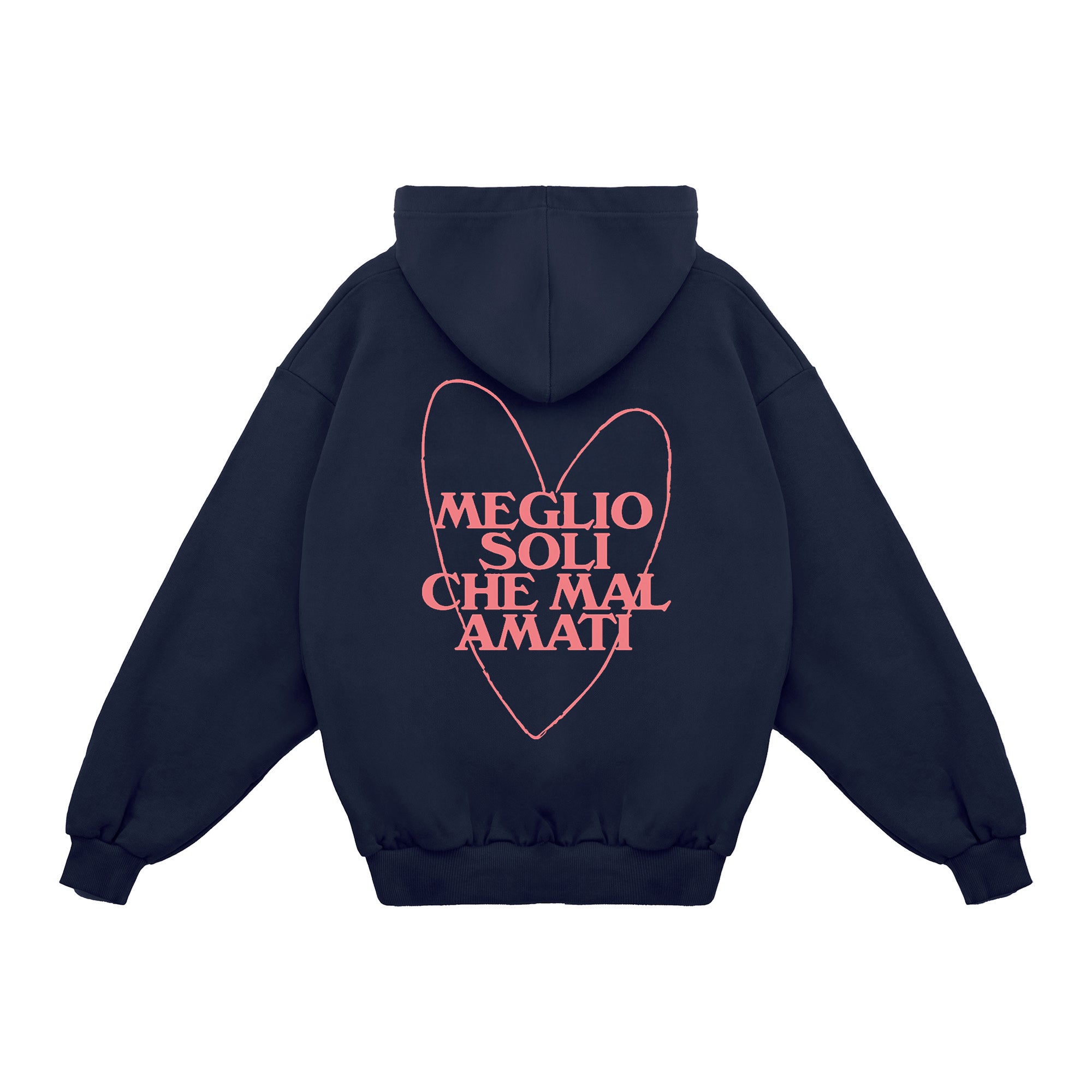 Felpa con cappuccio meglio soli che mal amati nera di Pescheria mon amour